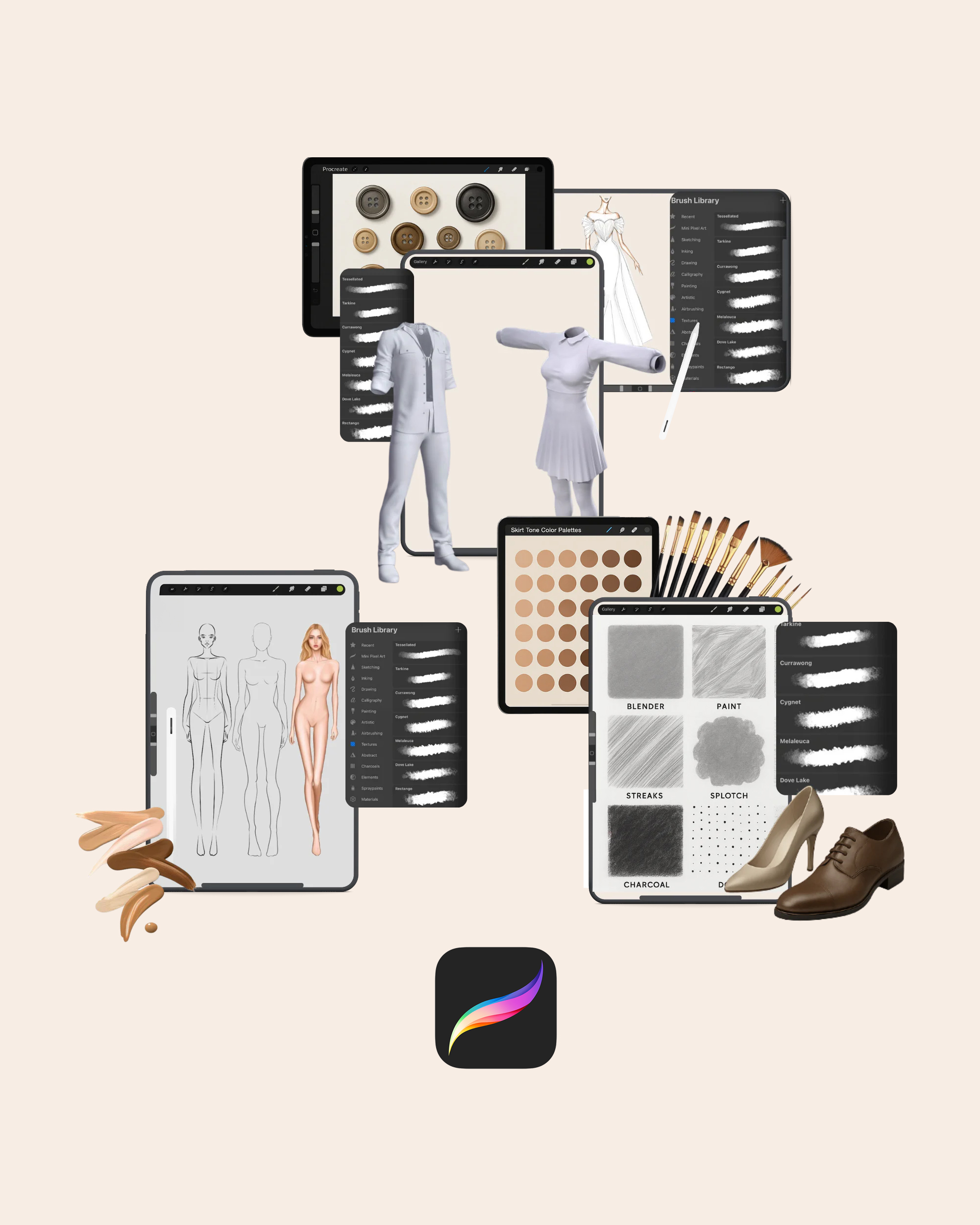 - 890+ Professional Brushes, Stencils & Templates — crafted for fabrics, folds, textures, trims, and more.