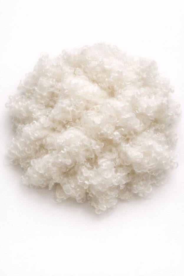 Acetate fibers have a smooth, silky hand feel and a high natural luster that closely resembles silk. The fiber drapes fluidly and moves softly with the body, making it suitable for garments with an elegant silhouette. Acetate is breathable and comfortable to wear but has relatively low strength, especially when wet. The fiber is thermoplastic, meaning it can be heat-shaped but is also sensitive to high temperatures, which can cause melting or deformation.