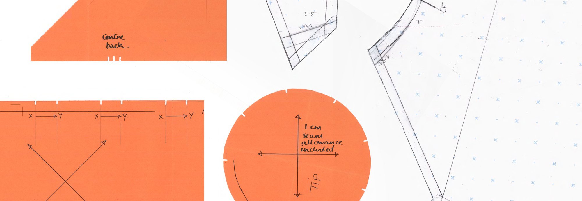 Notions: 0.4 m ( about 16″) of 5 cm (2″) satin ribbon; #5 (2.5cm) petersham ribbon; elastic (optional).