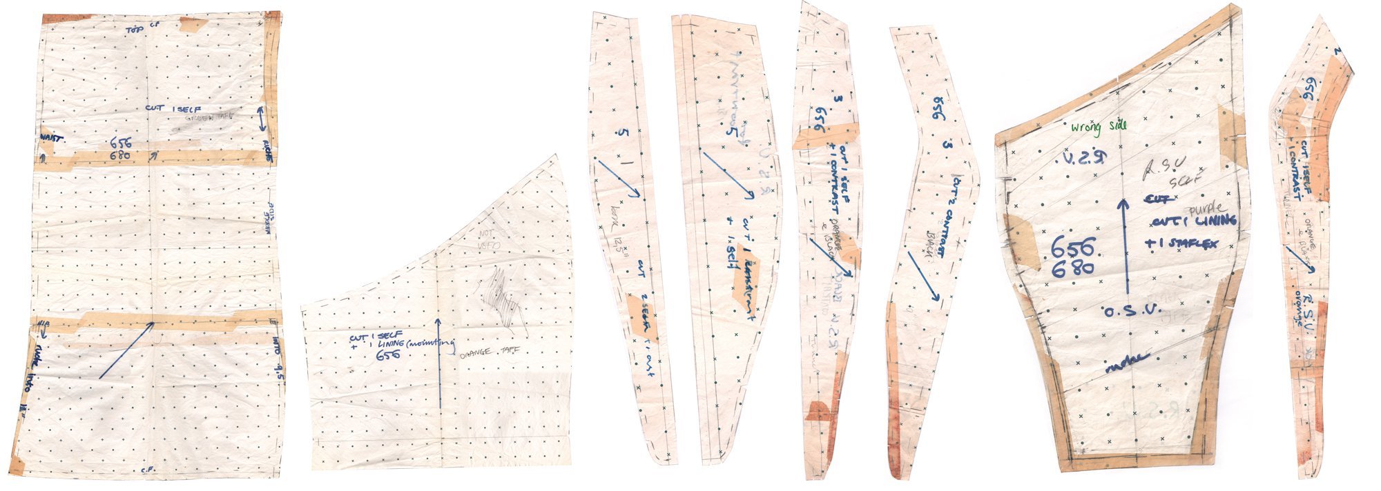 Fabric requirements: taffeta (with additional shade for contrast); lining; Stayflex fusible cotton interfacing