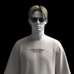 "Runway model in futuristic streetwear, industrial setting, dynamic motion blur, Sony Alpha, 35mm lens, high contrast editing"